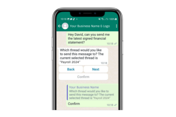 Centralise messaging data to offer team-wide visibility of conversations to meet your data retention obligations and more easily track billable time from WhatsApp conversations.